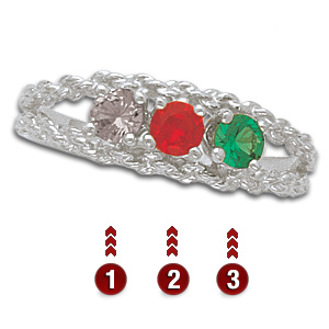 Why is this ring yellow or white? The Mother's Ring Builder uses yellow gold or white gold for displaying the styles, depending on the artwork available. This does not reflect the metal type chosen.