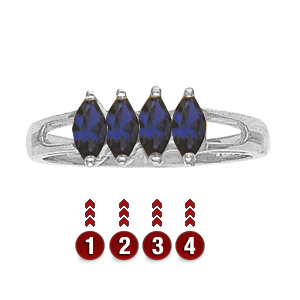 The sterling silver Memorable Marquise ring offers personalization for four marquise-cut simulated gemstones. The Memorable Marquise ring measures about 6mm at the top center. Stone size: 5mm by 2.5mm. Made in USA.