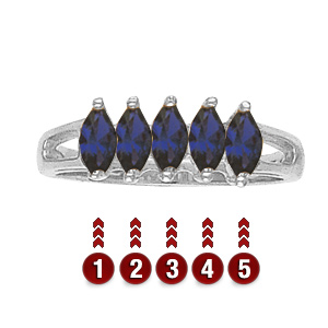 The sterling silver Memorable Marquise ring offers personalization for five marquise-cut genuine gemstones. The Memorable Marquise ring measures about 6mm at the top center. Stone size: 5mm by 2.5mm. Made in USA.