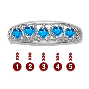 Polished sterling silver. This ring offers stone personalization for 2-6 round gemstones. Each gemstone is 2.5mm in diameter. Choose simulated or genuine gemstones. Made in the USA.