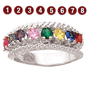 Twisted Rope Sterling Silver Mother's Ring with 8 simulated birthstones