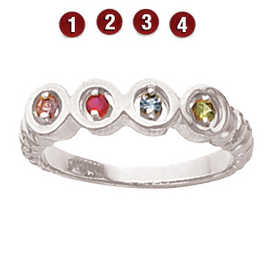 Family Coil Sterling Silver Mother's Ring with 4 simulated birthstones
