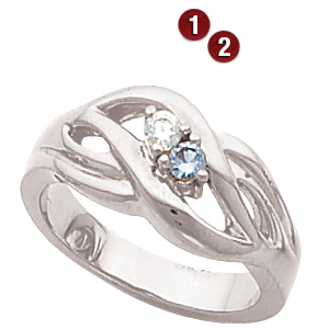 Loving Nest Sterling Silver Mother's Ring with 2 simulated birthstones
