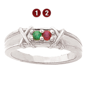 Two Stitches Sterling Silver Mother's Ring with 2 simulated birthstones
