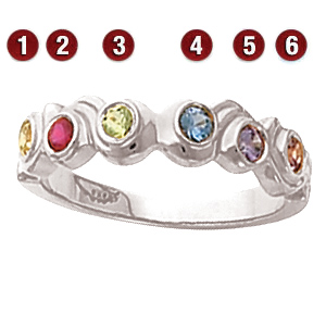 Mother's Journey Sterling Silver Mother's Ring with 6 genuine birthstones