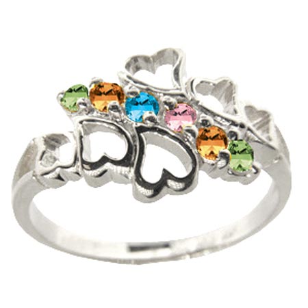 Family Hearts Mother's Ring Sterling Silver with 6 genuine birthstones
