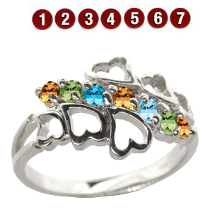 Family Hearts Mother's Ring Sterling Silver with 7 simulated birthstones
