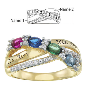Cascade Mother's Ring 14kt Yellow Gold with 4 genuine birthstones