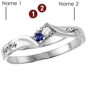 Select a color for each of two 3mm round genuine gemstones on the 10kt white gold Timeless Love promise ring. Each engraving area fits up to 10 characters. Import.