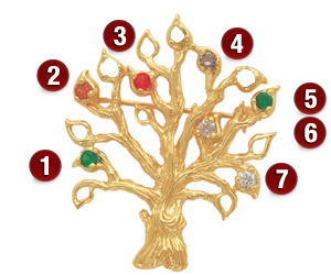 Tree of Life Pin with 7 genuine birthstones in 10kt yellow gold