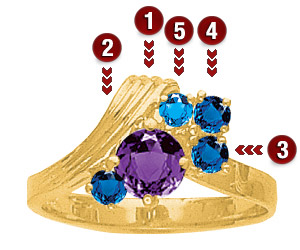 Birthstone Surround with 5 genuine birthstones in 10kt yellow gold