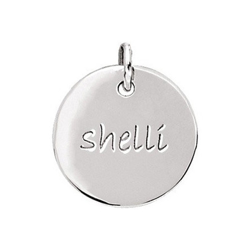 This polished, solid sterling silver Posh Mommy disc is 14mm in diameter [slightly smaller than a dime] It features personalization for one name. Engrave up to 9 lower case letters. Chain not included.