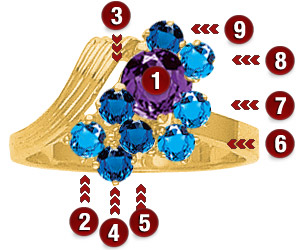 Why is this ring yellow or white? The Mother's Ring Builder uses yellow gold or white gold for displaying the styles, depending on the artwork available. This does not reflect the metal type chosen.
