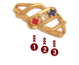 Centered Reflections with 3 simulated birthstones in 10kt yellow gold