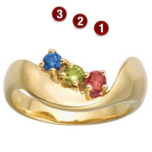 The curving graceful design features 2.75mm round gemstones. Choose one to six gemstones. Each is prong-set. Ring is available in white or yellow, 10k or 14k gold, with simulated or genuine birthstones.