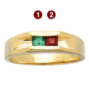 Classic design features 3.0mm princess cut gemstones. Choose one to six gemstones. Each is channel-set. Ring is available in white or yellow, 10k or 14k gold, with simulated or genuine birthstones.