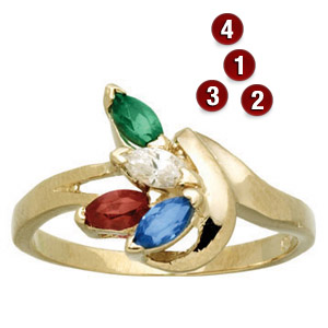 Give Mom flowers that will never wilt! This bouquet inspired design features 5x2.5mm marquise gemstones. Choose one to six gemstones. Each is prong-set. Ring is available in white or yellow, 10k or 14k gold, with simulated or genuine birthstones.