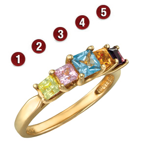 Gold-plated Sterling Silver Garland Ring with Princess Cut Stones with 5 simulated birthstones