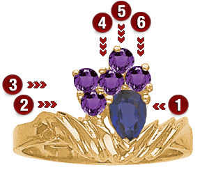 Why is this ring yellow or white? The Mother's Ring Builder uses yellow gold or white gold for displaying the styles, depending on the artwork available. This does not reflect the metal type chosen.