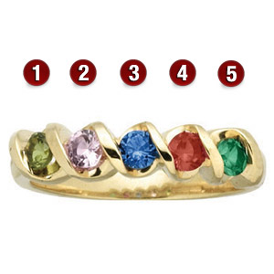 Gorgeous ribbons of 14kt white gold surround five 3mm round genuine gemstones on this Harmony mother's ring. Each stone is prong-set.
