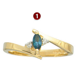 Tradition with a touch of glamour! Open-style band promotes maximum brilliance and light. Choose one to six 5x2.5mm marquise stones. Each is prong-set. Two diamond accents. Ring is available in white or yellow, 10k or 14k gold, with simulated or genuine birthstones.