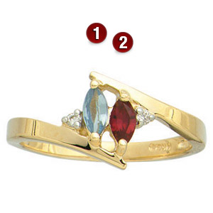 Marquise Memories with 2 simulated birthstones in 10kt yellow gold
