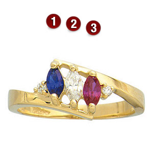 Tradition with a touch of glamour! Open-style band promotes maximum brilliance and light. Choose one to six 5x2.5mm marquise stones. Each is prong-set. Two diamond accents. Ring is available in white or yellow, 10k or 14k gold, with simulated or genuine birthstones.