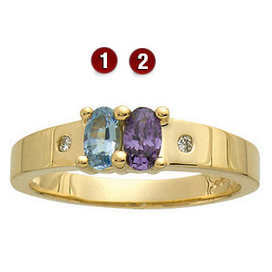 A mother's love can't be measured! Show your love with these large oval stones: 5x3mm. Choose one to six 5x3mm oval stones. Shared prongs. Two diamond accents. Ring is available in white or yellow, 10k or 14k gold, with simulated or genuine birthstones.