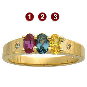 A mother's love can't be measured! Show your love with these large oval stones: 5x3mm. Choose one to six 5x3mm oval stones. Shared prongs. Two diamond accents. Ring is available in white or yellow, 10k or 14k gold, with simulated or genuine birthstones.
