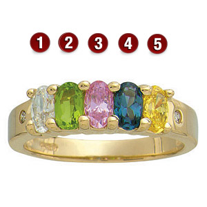 A mother's love can't be measured! Show your love with these large oval stones: 5x3mm. Choose one to six 5x3mm oval stones. Shared prongs. Two diamond accents. Ring is available in white or yellow, 10k or 14k gold, with simulated or genuine birthstones.