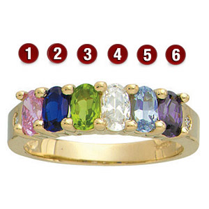 A mother's love can't be measured! Show your love with these large oval stones: 5x3mm. Choose one to six 5x3mm oval stones. Shared prongs. Two diamond accents. Ring is available in white or yellow, 10k or 14k gold, with simulated or genuine birthstones.