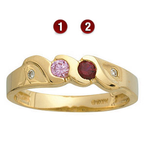 This ring is a perfect way to create a special memory. It features 3mm round facted gemstones and two diamond accents. Choose one to six gemstones, half bezel-set. This style is available in white or yellow, 10k or 14k gold, with simulated or genuine birthstones.