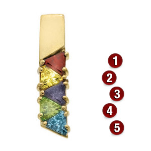This pendant is a perfect way to create a special memory. Free 18-inch fine rope chain. It features 4x4x4mm trillion cut facted gemstones. Choose one to six gemstones, prong-set. This style is available in white or yellow, 10k or 14k gold, with simulated or genuine birthstones.
