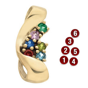 The curving graceful design features 2.75mm round gemstones. Choose one to six gemstones. Each is prong-set. Pendant is available in white or yellow, 10k or 14k gold, with simulated or genuine birthstones. Chain not included.