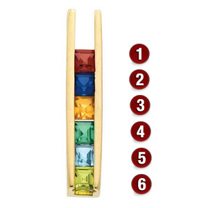 Classic design features 3.0mm princess cut gemstones. Choose one to six gemstones. Each is channel-set. Pendant is available in white or yellow, 10k or 14k gold, with simulated or genuine birthstones. Free 18-inch light rope chain included.