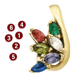 Give Mom flowers that will never wilt! Free matching 18-inch baby rope chain. This bouquet inspired design features 5x2.5mm marquise gemstones. Choose one to six gemstones. Each is prong-set. Pendant is available in white or yellow, 10k or 14k gold, with simulated or genuine birthstones.