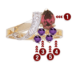 Why is this ring yellow or white? The Mother's Ring Builder uses yellow gold or white gold for displaying the styles, depending on the artwork available. This does not reflect the metal type chosen.
