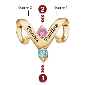 The mother's chandelier pendant is made of 14k white gold. Choose two names and corresponding simulated birthstones. Prong set gemstones measure 3.0mm in diameter. Engrave up to 8 characters per name. Chain not included.