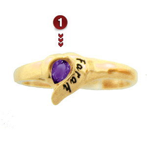 This ring combines names and your choice of a synthetic or genuine birthstone. Available in yellow or white gold. Round gemstone is 2.5mm in diameter. Ring measures about 8.5mm at the widest top measurement. Engrave up to 7 characters or spaces on both left and right sides of the ring.