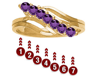 The Parenting Promise Ring measures about 7.5mm at the top center. This ring accepts 2-7 stones that are 2.5mm in diameter.