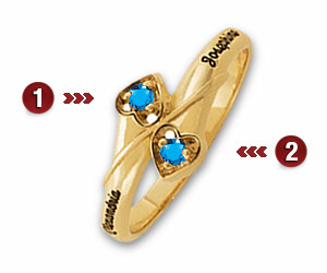 Delightful Hearts Promise Ring with 2 simulated birthstones in 10kt yellow gold