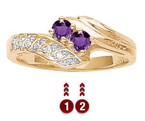 The Path of Fate ring looks great for any occasion. Birthstones are accented with channel-set diamonds. The ring measures about 9.5 mm at the top center. This ring accepts 2-7 stones that are 2.5mm in diameter.