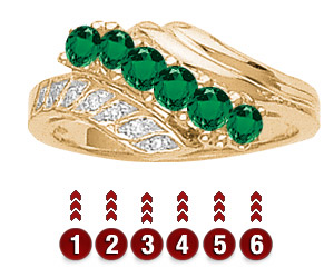 The Path of Fate ring looks great for any occasion. Birthstones are accented with channel-set diamonds. The ring measures about 9.5 mm at the top center. This ring accepts 2-7 stones that are 2.5mm in diameter.