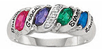 Sparkling stones alternate with bands of sterling silver accented cubic zirconias to capture your story. The Songs of Life ring is always set with four marquise gemstones: 6x3mm. Five 1.3mm round cubic zirconia accent stones. This ring is available with simulated or genuine birthstones. Engraving areas 1, 2, 3 and 4 accommodate up to 10 characters, including spaces and punctuation.