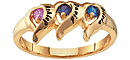 The Flames of Love mother's ring combines one to three names and your choice of corresponding simulated or genuine birthstones. Each round gemstone is 2.5mm in diameter. Ring measures about 8.5mm at the widest top measurement. Choose 10kt or 14kt, white or yellow gold. Made in USA.