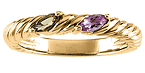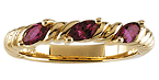 The Unity stackable mother's ring features personalization for one to three marquise shape birthstones. Each gemstone is 5mm x 2.5mm. This mother's birthstone ring is available with simulated or genuine birthstones. Ring width: 3.5mm tapers to 2.75mm. Choose 14kt yellow or white gold. Made in USA.