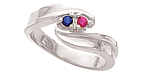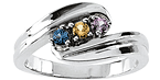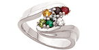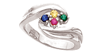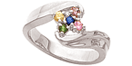 Embracing arms mother's ring is cast in polished sterling silver and set with your choice of one to seven round brilliant gemstones. Each prong-set gemstone is 3mm in diameter. This ring style is available with simulated or genuine birthstones. Import.