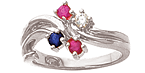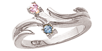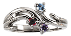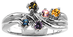 The Family Branches mother's ring features personalization for one to five 3mm round brilliant gemstones. This sterling silver mother's ring is available with simulated or genuine birthstones. Import.