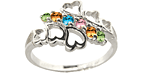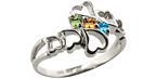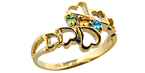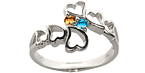 The Family Hearts ring features six pierced hearts and two to eight 2.5mm round birthstones of your choosing. This mother's ring is available in 10kt or 14kt, white or yellow gold. Import.
