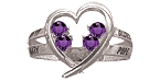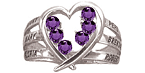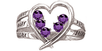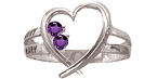 The sterling silver Family Heart ring features personalization for two to six names and corresponding birthstones. Stones are 2.25mm round. This ring style is available with simulated or genuine birthstones. Engrave up to 7 characters per name. Designed and produced in California.